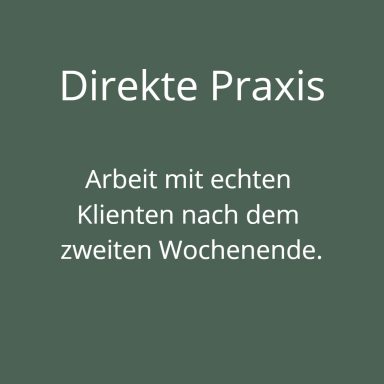 - Sicherheit: Du lernst echte Präsenz und aktives Zuhören, um eine tiefe Verbindung zum Klienten aufzubauen.